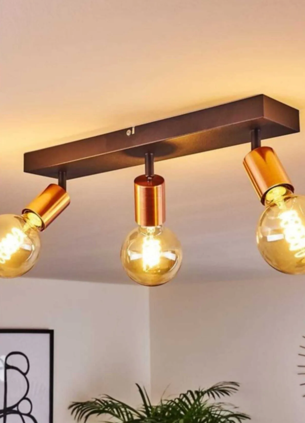 Uzun ömürlü aydınlatma deneyimi sunar.- Mutfak gibi alanlarda kullanım için idealdir; şık tasarımıyla mekanınıza modern bir dokunuş katar.- Üç adet ampul başlığı sayesinde farklı aydınlatma ihtiyaçlarınıza kolayca uyum sağlar.- çeşitli tavan yüksekliklerine mükemmel şekilde uyum gösterir.- Dayanıklı metal materyali sayesinde uzun süreli kullanım vaat ederken, bakır detaylarıyla estetik bir görünüm sunar.- Standart E27 duy tipine sahip olması, geniş bulunabilirlik avantajı sağlayarak değişim veya bakım işlemlerini kolaylaştırır. Başlıklar hareketlidir